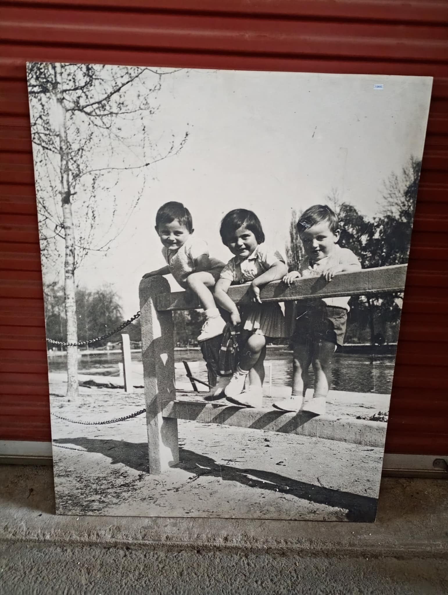 Grand tirage photo ancien – 100cm × 130 cm – Enfants au parc, noir et blanc